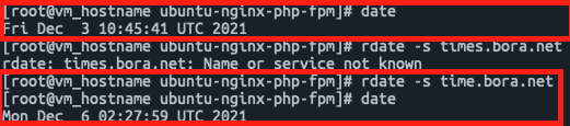 시간동기화를 한뒤에 다시 컨테이너에 접근해서 #apt-get update 명령어를 치면 정상적으로 작동한다.