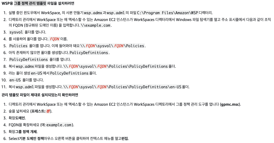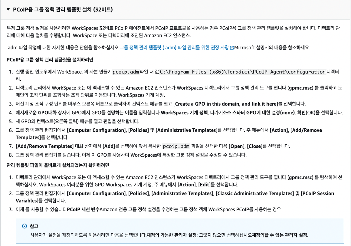 1. 관리자 WorkSpace를 생성 및 설정. (PCoIP, WSP 각각 생성해야함)